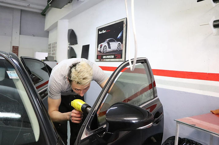 La pose complète des vitres teintées dure en moyenne environ une heure. Deux techniciens travaillent simultanément sur votre véhicule afin d’optimiser le temps sans jamais négliger la qualité. Cette organisation garantit un résultat propre, rapide et parfaitement maîtrisé.